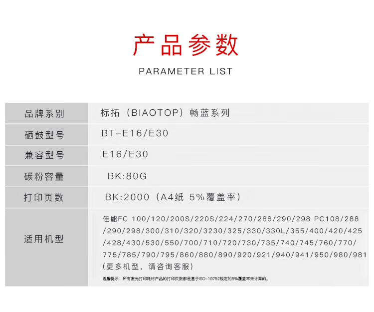> 办公耗材 复印纸 硒鼓 > 打印耗材 > 硒鼓 > 标拓(Biaotop)E16/30黑色硒鼓适用佳能FC 100/120/200S/220S/224/270/288/290/298| 产品名称 : | 标拓(Biaotop)E16/30黑色硒鼓适用佳能FC 100/120/200S/220S/224/270/288/290/298 |