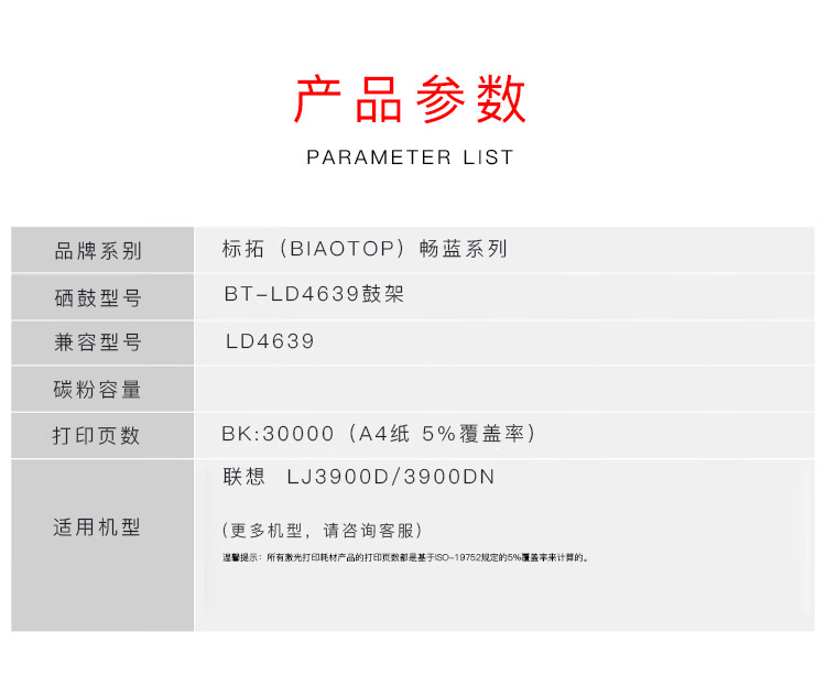 | 产品名称 : | 标拓 (Biaotop) LD4639硒鼓架适用联想LJ3900/3900DN打印机 Pro+MAX版 |