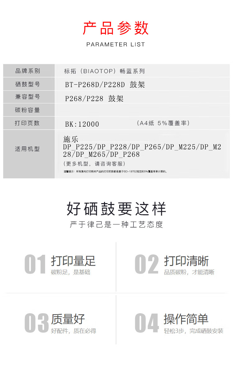 > 办公耗材 复印纸 硒鼓 > 打印耗材 > 硒鼓 > 标拓 (Biaotop) P268D/P228D硒鼓架适用施乐M228db /M228z/M268dw/P268b/P268d打印机 畅蓝系列| 产品名称 : | 标拓 (Biaotop) P268D/P228D硒鼓架适用施乐M228db /M228z/M268dw/P268b/P268d打印机 畅蓝系列 |