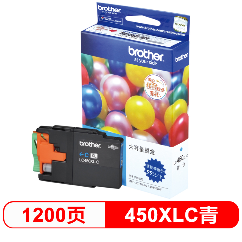 | 产品名称 : | 兄弟LC450XL-C 青色墨盒 |