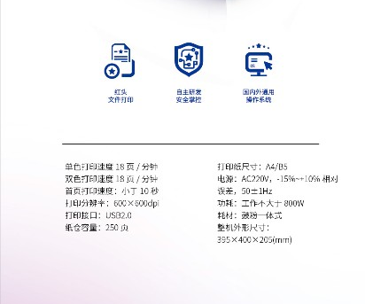 | 产品名称 : | 光电通 OEP102D 专用红黑双色激光打印机 |