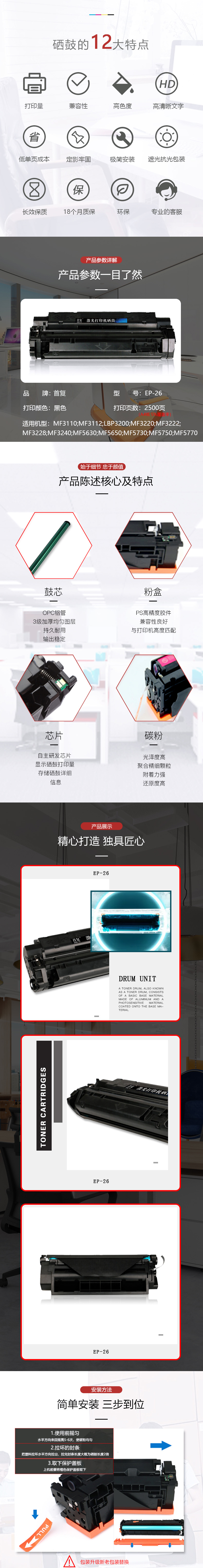 > 办公耗材 复印纸 硒鼓 > 打印耗材 > 硒鼓 > 首复 EP-26 适用佳能Canon EP26 MF3110 3112 3220 3222 MF5630 5650 3228 3240 LBP3200打印机| 产品名称 : | 首复 EP-26 适用佳能Canon EP26 MF3110 3112 3220 3222 MF5630 5650 3228 3240 LBP3200打印机 |