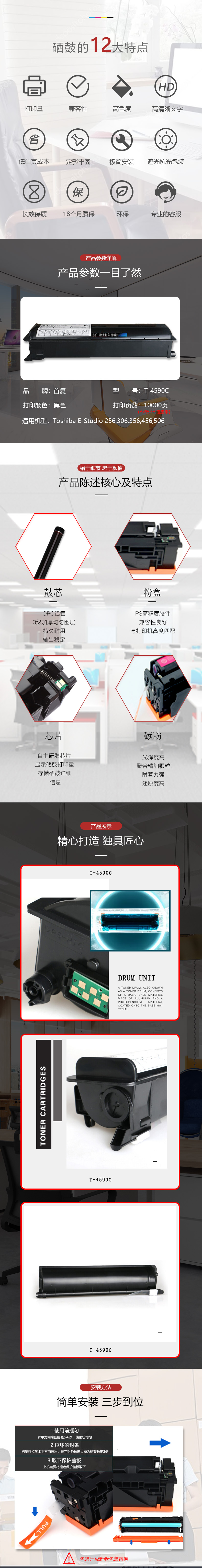 | 产品名称 : | 首复 T-4590C 硒鼓 适用东芝Toshiba E-Studio 256 306 356 456 506打印机硒鼓 |