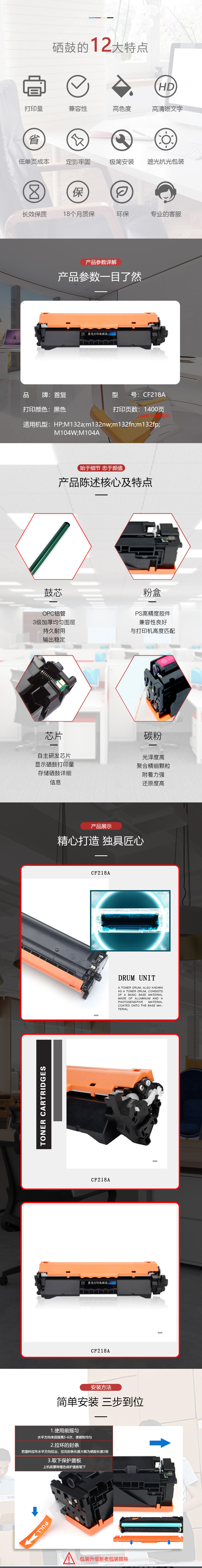 | 产品名称 : | 首复 CF218A带芯片粉盒适用惠普HP LaserJet Pro M104/MFP/M132打印机 |