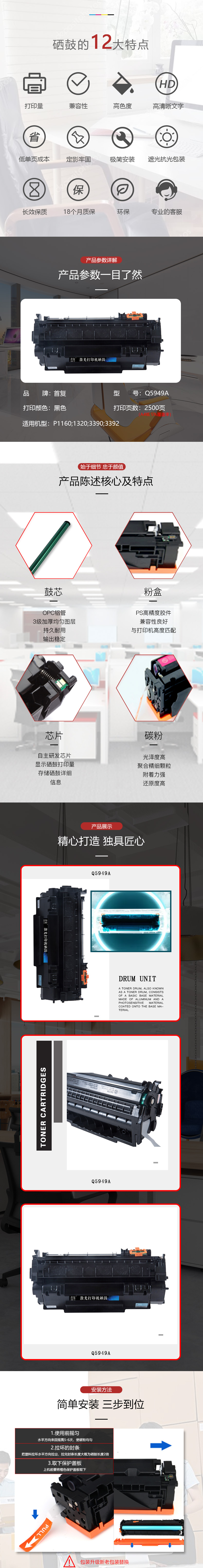 | 产品名称 : | 首复 Q5949A硒鼓 适用 P1160;1320;3390;3392 |