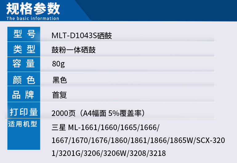 > 办公耗材 复印纸 硒鼓 > 打印耗材 > 硒鼓 > 首复MLT-D1043S硒鼓 适用三星ML-1661/1660/1665/1670/SCX-3200/3201/3218打印机| 产品名称 : | 首复MLT-D1043S硒鼓 适用三星ML-1661/1660/1665/1670/SCX-3200/3201/3218打印机 |