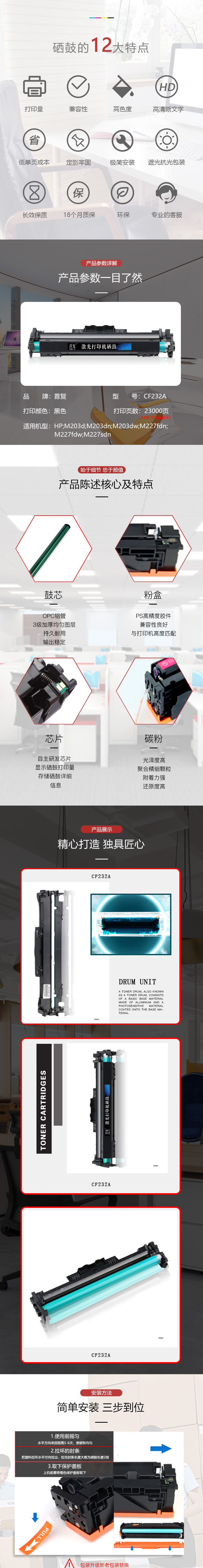 > 办公耗材 复印纸 硒鼓 > 打印耗材 > 硒鼓 > 首复 CF232A硒鼓 32A硒鼓 适用惠普M203 M203d M203dn M227fdn M227fdw M206dn 成像鼓组件 感光鼓 不含粉盒 黑色(约23000页)| 产品名称 : | 首复 CF232A硒鼓 32A硒鼓 适用惠普M203 M203d M203dn M227fdn M227fdw M206dn 成像鼓组件 感光鼓 不含粉盒 黑色(约23000页) |