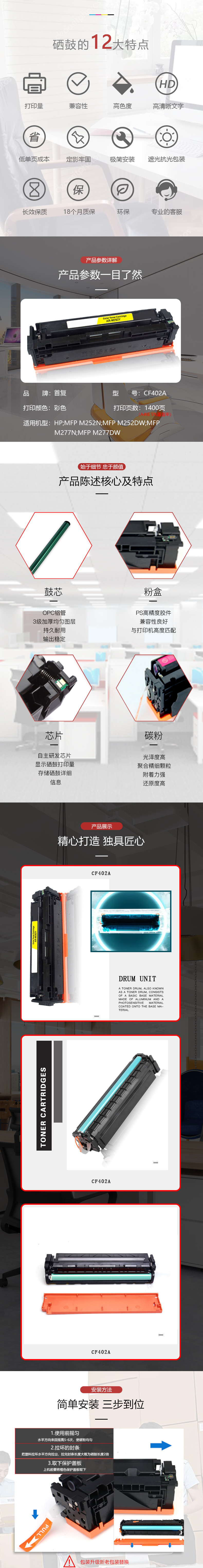 | 产品名称 : | 首复 CF402A 黄色硒鼓 201A 适用于:HP M252N/M277DW/M252DW |