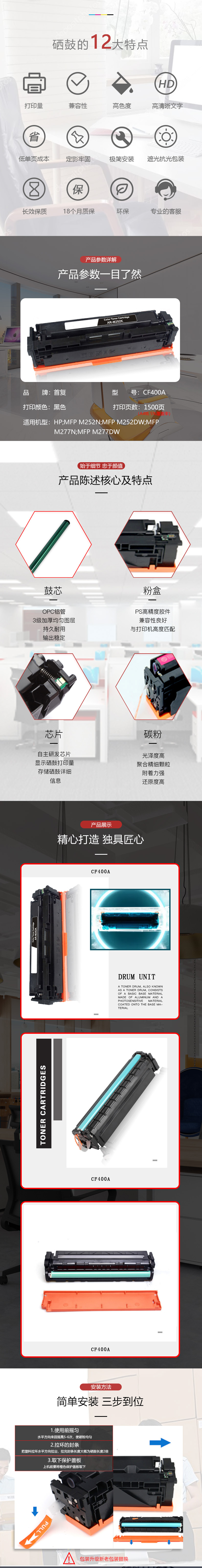 | 产品名称 : | 首复 CF400A 黑色硒鼓201A 适用于:HP M252N/M277DW/M252DW |