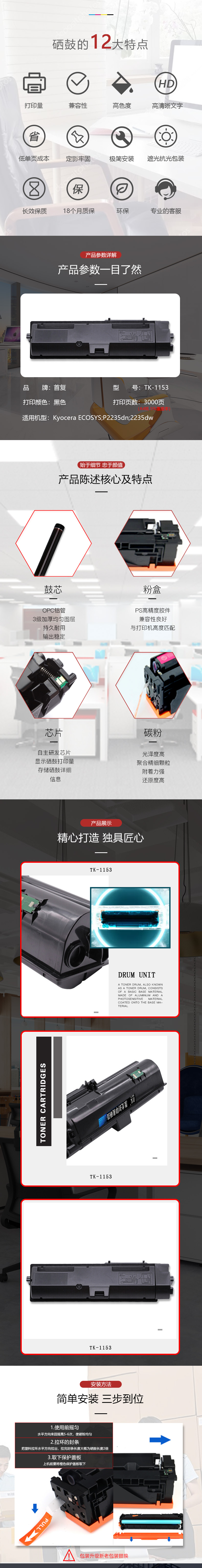 | 产品名称 : | 首复 TK-1153 硒鼓 适用京瓷P2235dn P2235dw打印机 |