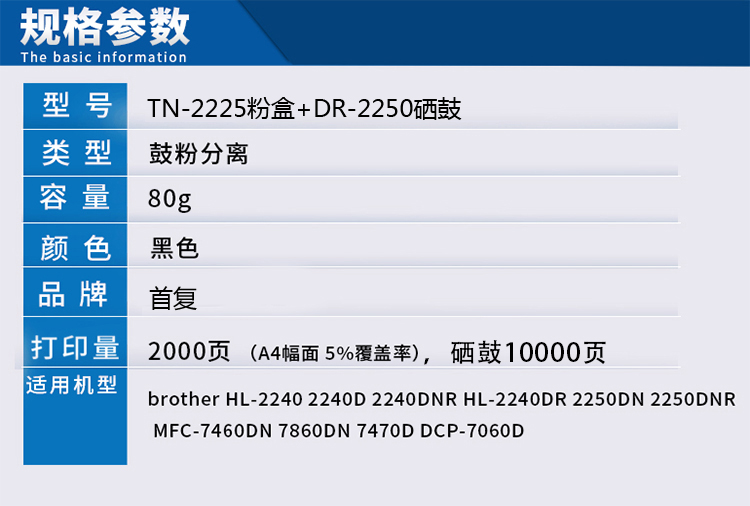 | 适用机型: | 兄弟HL-2240D 2250DN MFC-7360 MFC-7470D DCP-7060D |