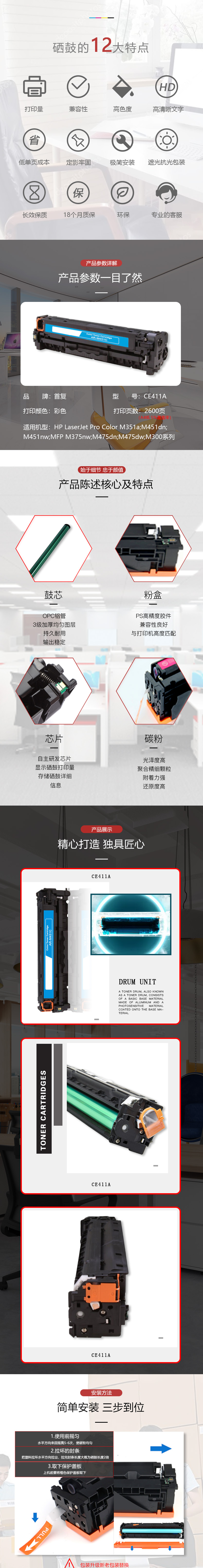 | 产品名称 : | 首复 CE411A 蓝色硒鼓 305A 适用惠普HP M351a M451dn M451nw M375nw M475dn |