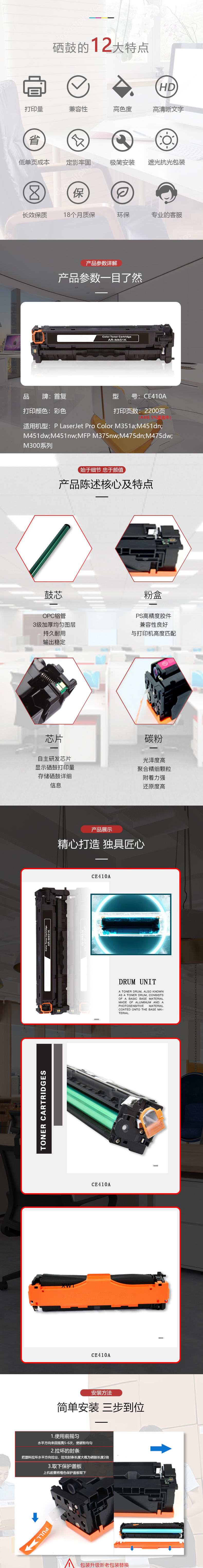 | 产品名称 : | 首复 CE410A 黑色硒鼓 305A 适用惠普HP M351a M451dn M451nw M375nw M475dn |