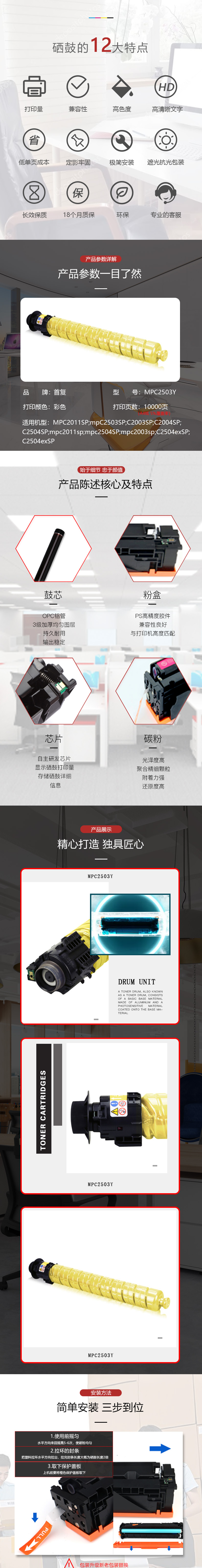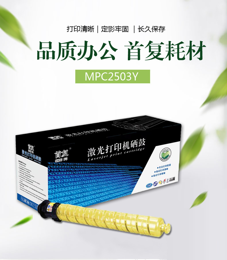 产品名称 : 首复 MPC2503Y 硒鼓 专业版 黄色大容量 适用理光MPC2003SP 2504 2011SP C2004复印机
