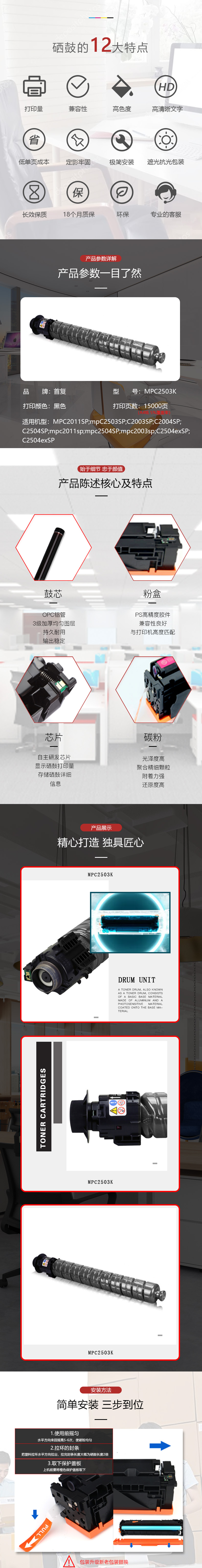 | 产品名称 : | 首复 MPC2503K 硒鼓 专业版 黑色大容量 适用理光MPC2003SP 2504 2011SP C2004复印机 |