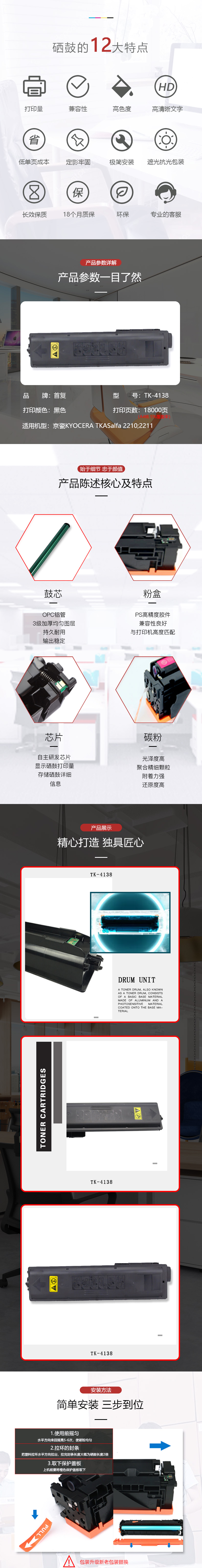 | 产品名称 : | 首复 TK-4138 适用京瓷KYOCERA TKASalfa 2210 2211复印机 |