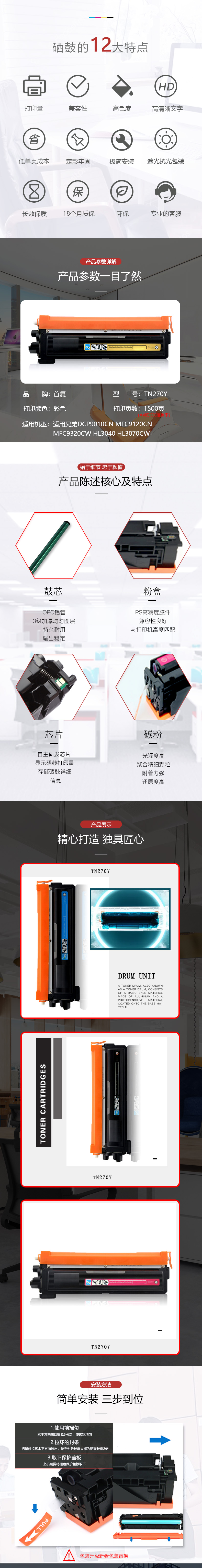 > 办公耗材 复印纸 硒鼓 > 打印耗材 > 硒鼓 > 首复 TN270Y 黄色粉盒 适用兄弟DCP9010CN MFC9120CN MFC9320CW HL3040 HL3070CW 打印机硒鼓| 产品名称 : | 首复 TN270Y 黄色粉盒 适用兄弟DCP9010CN MFC9120CN MFC9320CW HL3040 HL3070CW 打印机硒鼓 |