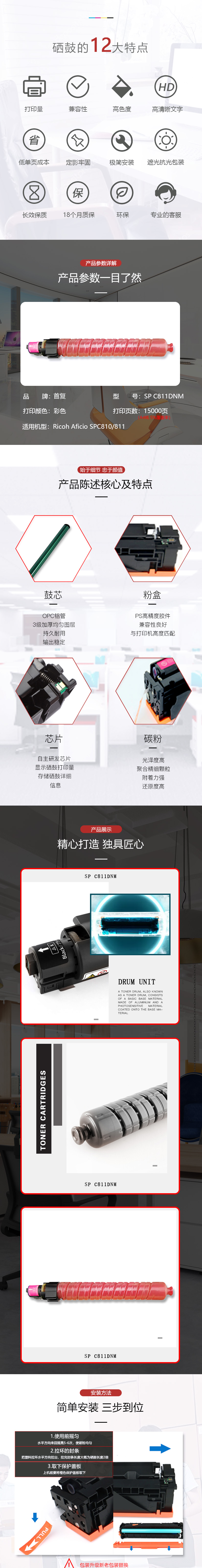 | 产品名称 : | 首复 SP C811DNM 墨粉SP C821C墨盒C820粉盒C811复印机C810碳粉RICOH |