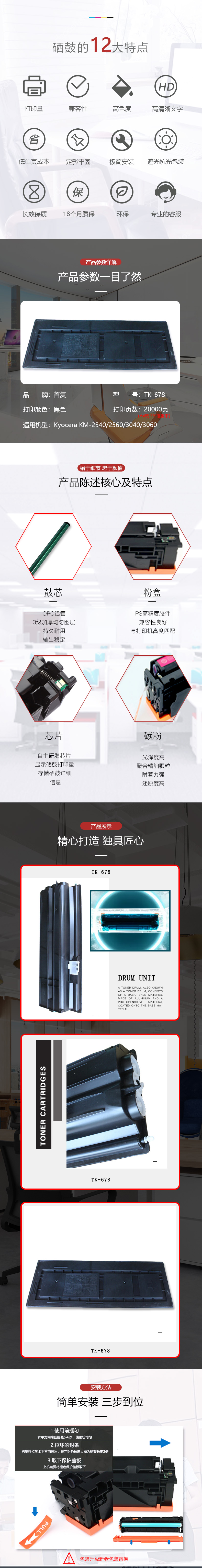 产品名称 : 首复 TK-678 粉盒 适用京瓷kyocera KM-2540/2560/3040/3060复印机