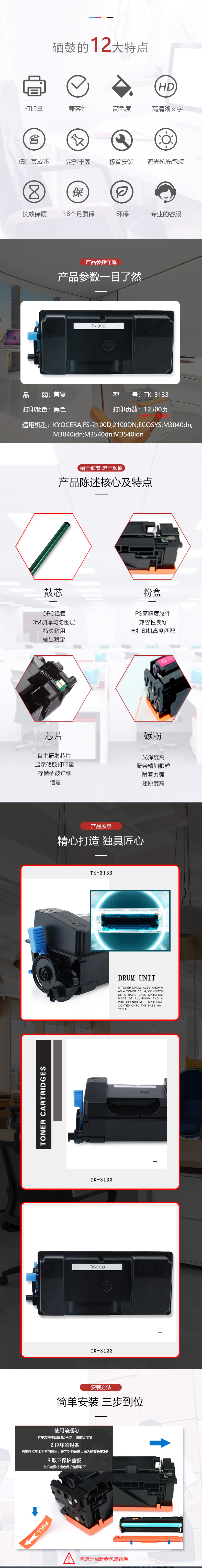 | 产品名称 : | 首复 TK-3133 硒鼓适用京瓷FS-4200DN FS-4300DN M3560idn M3550idn大容量打印机 |