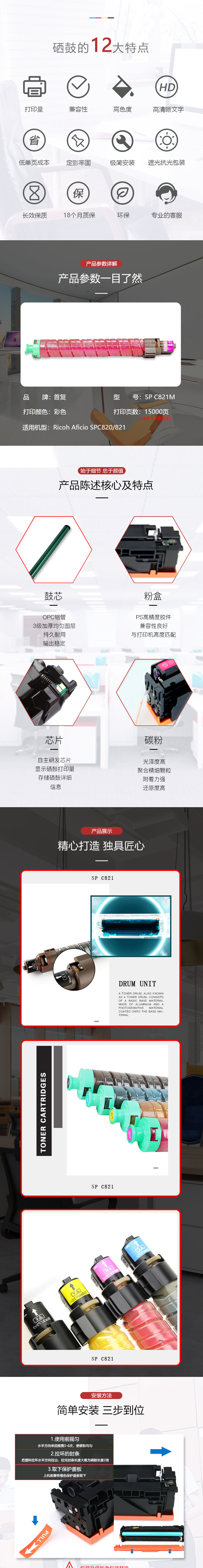 | 产品名称 : | 首复 SP C821M 粉盒 适用理光AFICIO SP C820 C821 |