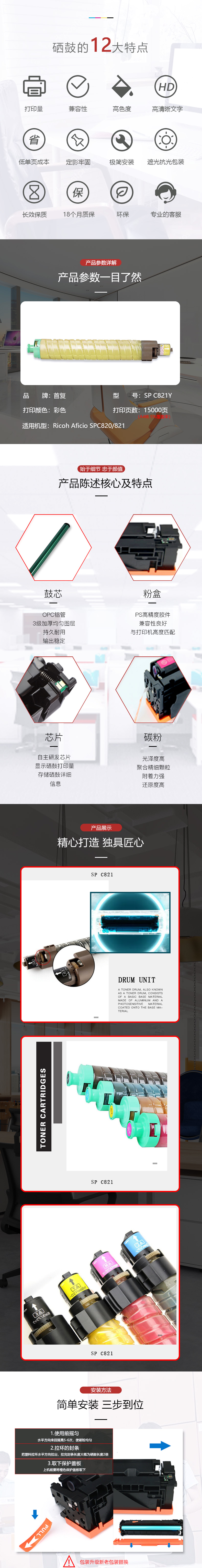 | 产品名称 : | 首复 SP C821Y 粉盒 适用理光AFICIO SP C820 C821 |
