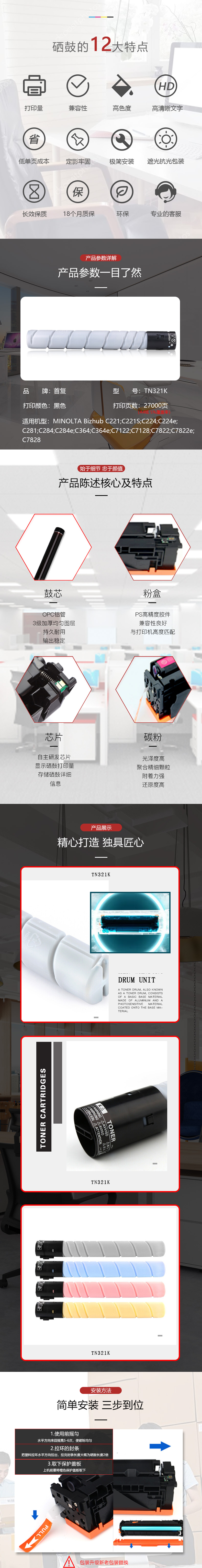 | 产品名称 : | 首复 TN321K 黑色 专业版 适用柯美C364;C284;C224;C7822;C7828;C221 C281 |