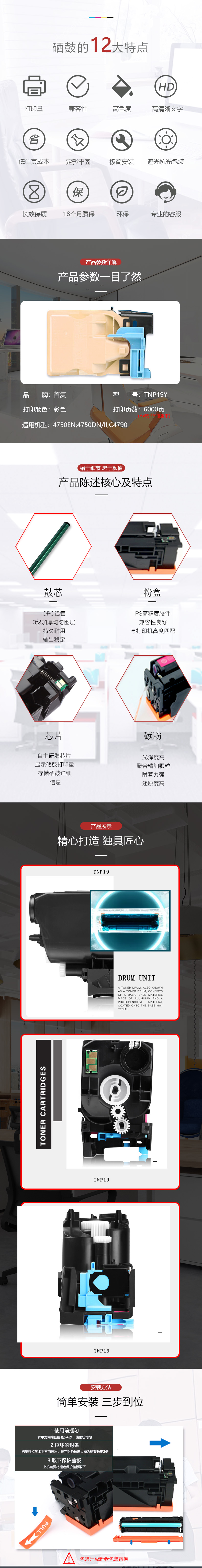 产品名称 : 首复 TNP19Y 粉盒 适合magicolor 4750DN打印机C4795 XMS-TNP19Y黄色