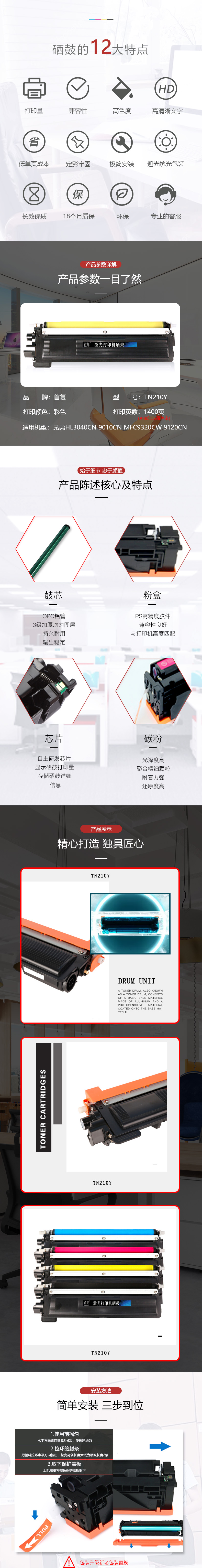 | 适用机型: | 兄弟HL3040CN 9010CN MFC9320CW 9120CN TN210/270 |