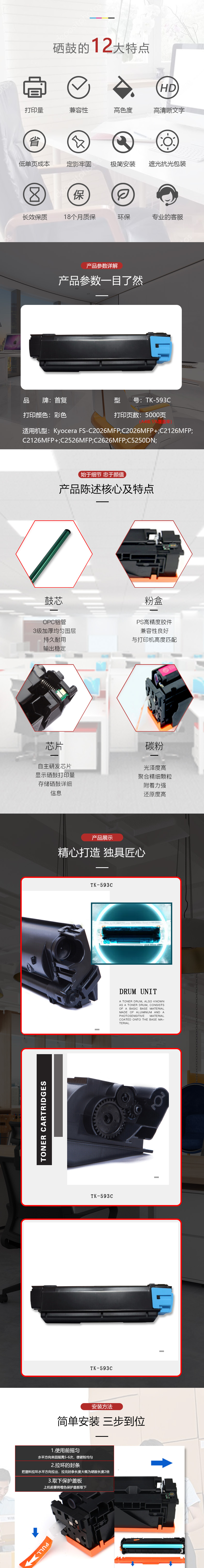 | 产品名称 : | 首复 TK-593C 粉盒 适用京瓷Kyocera FS-C2126MFP C2526 C2626 C5250DN墨粉盒 |