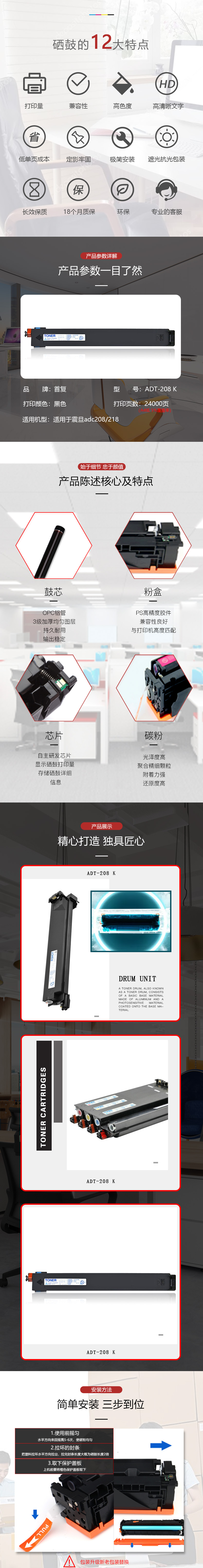| 产品名称 : | 首复 ADT-208粉盒 ADC218墨盒208 218复印机彩粉 |