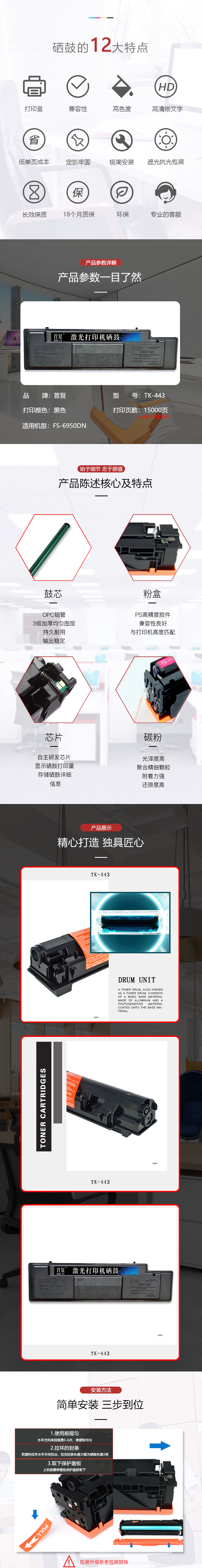 | 产品名称 : | 首复 TK-443 粉盒 适用京瓷TK440 441 442 443 FS-6950DN 京瓷TK443 |
