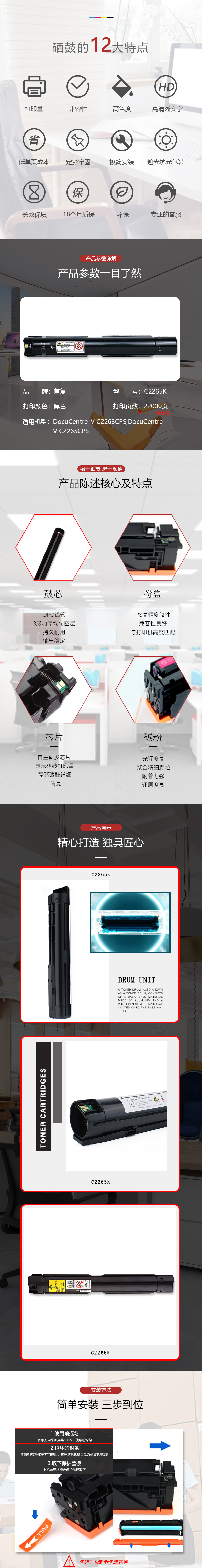 | 产品名称 : | 首复 C2265K 黑色 22K适用施乐 五代 V2260 2263 2265复合机碳粉 |