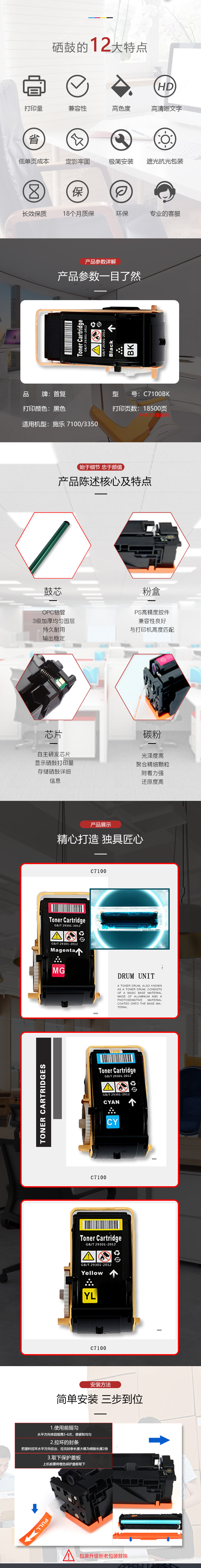 | 产品名称 : | 首复 C7100 黑色粉盒 适用于施乐C7100/C3350/Xerox 7100/3350 |