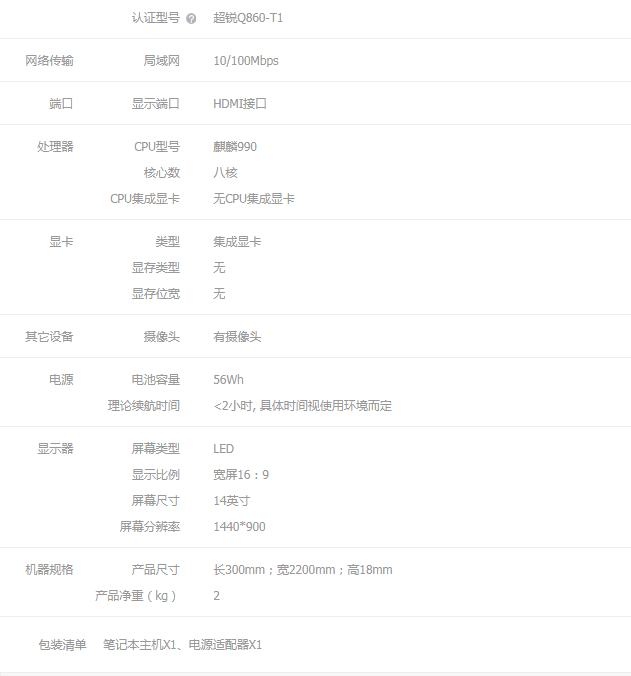 | 产品名称 : | 清华同方超锐Q860-T1商用笔记本华为麒麟990 八核 8G内存/256G/集显/56Wh/14英寸+UOS统信桌面国产系统 |