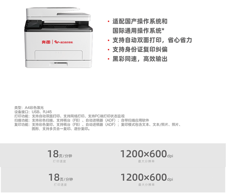 产品名称 : 奔图 (PANTUM)CM1155ADN A4彩色激光多功能 打印复印扫描打印机商用保密安全打印机国产