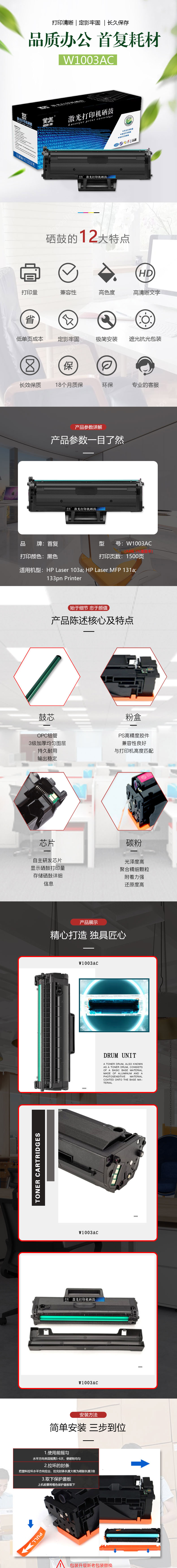 | 适用机型: | 适用惠普103a硒鼓 103a粉盒 hp131a MFP133pn打印机墨盒 1003ac硒鼓 |