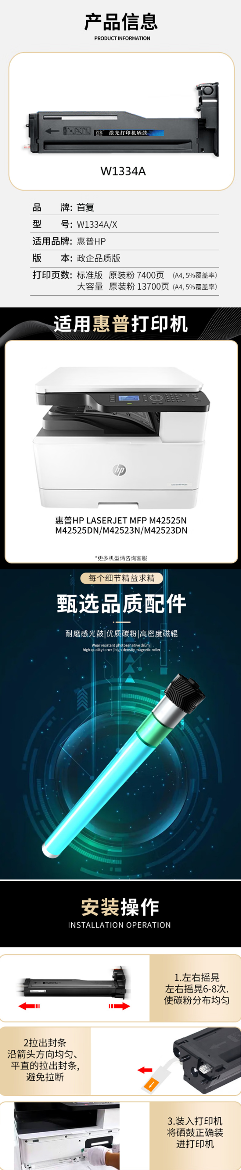 > 办公耗材 复印纸 硒鼓 > 打印耗材 > 硒鼓 > 首复W1334A粉盒 适用惠普HP LaserJet MFP M42525n m42525dn M42523n m42523d硒鼓| 产品名称 : | 首复W1334A粉盒 适用惠普HP LaserJet MFP M42525n m42525dn M42523n m42523d硒鼓 |