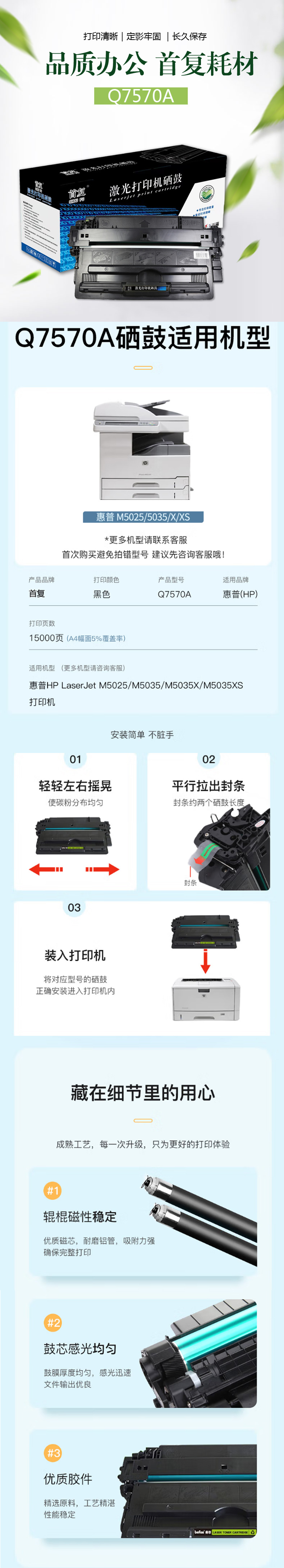 | 产品名称 : | 首复Q7570A 硒鼓黑色 适用于惠普HP M5025 5035 5035x 5035xsMPF |