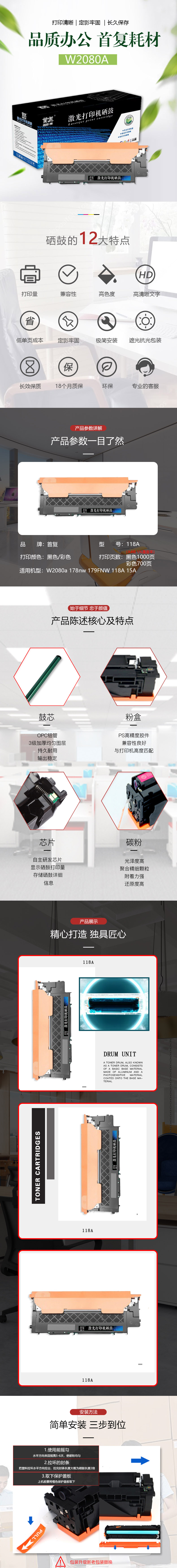 | 产品名称 : | 首复W2080A 118A 黑色硒鼓适用惠普178nw硒鼓179fnw 150nw 150a 150w w2080a |